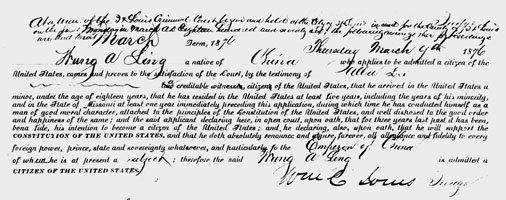 naturalized as an American citizen in St. Louis in 1876, a