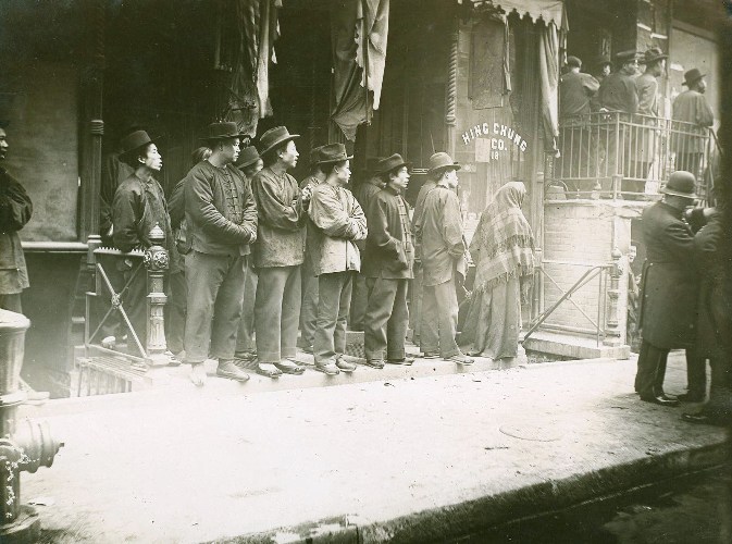 An early, undated photo of Chinese men lined up outside No.