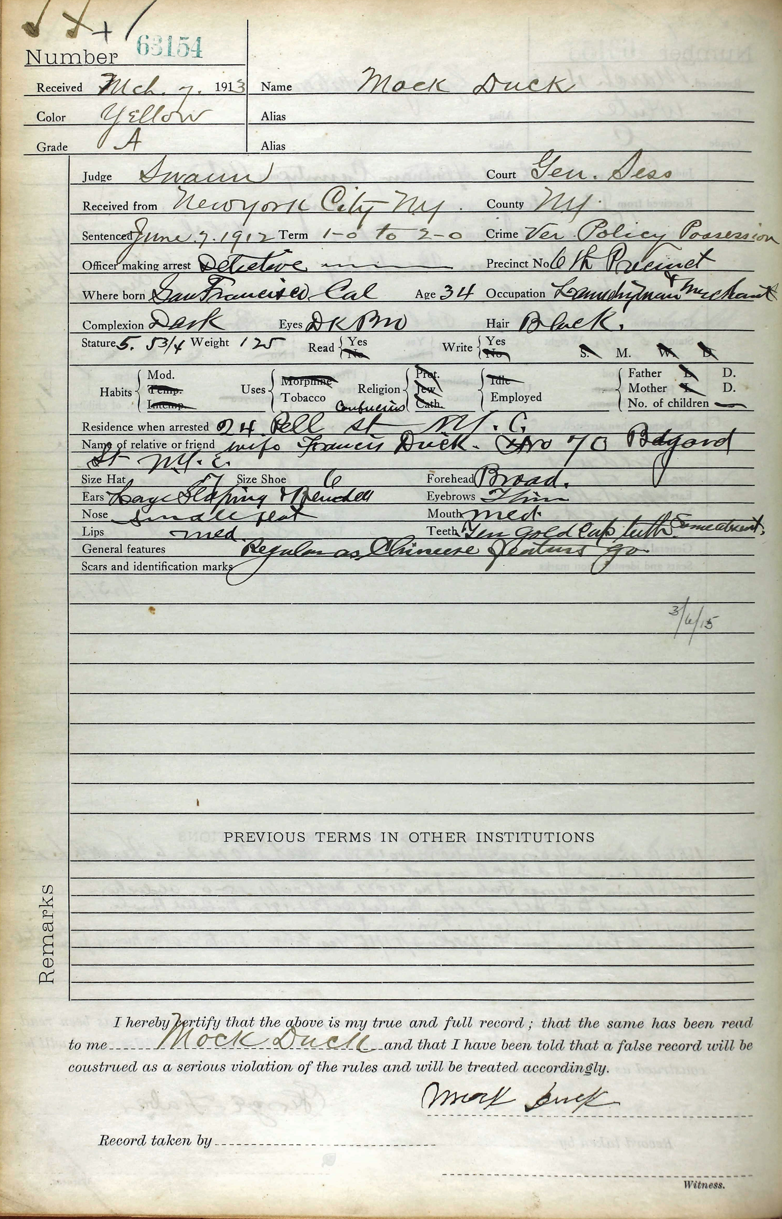 Duck was never convicted of murder. He was frequently