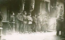 An early, undated photo of Chinese men lined up outside No.